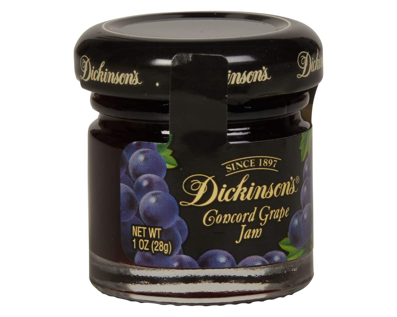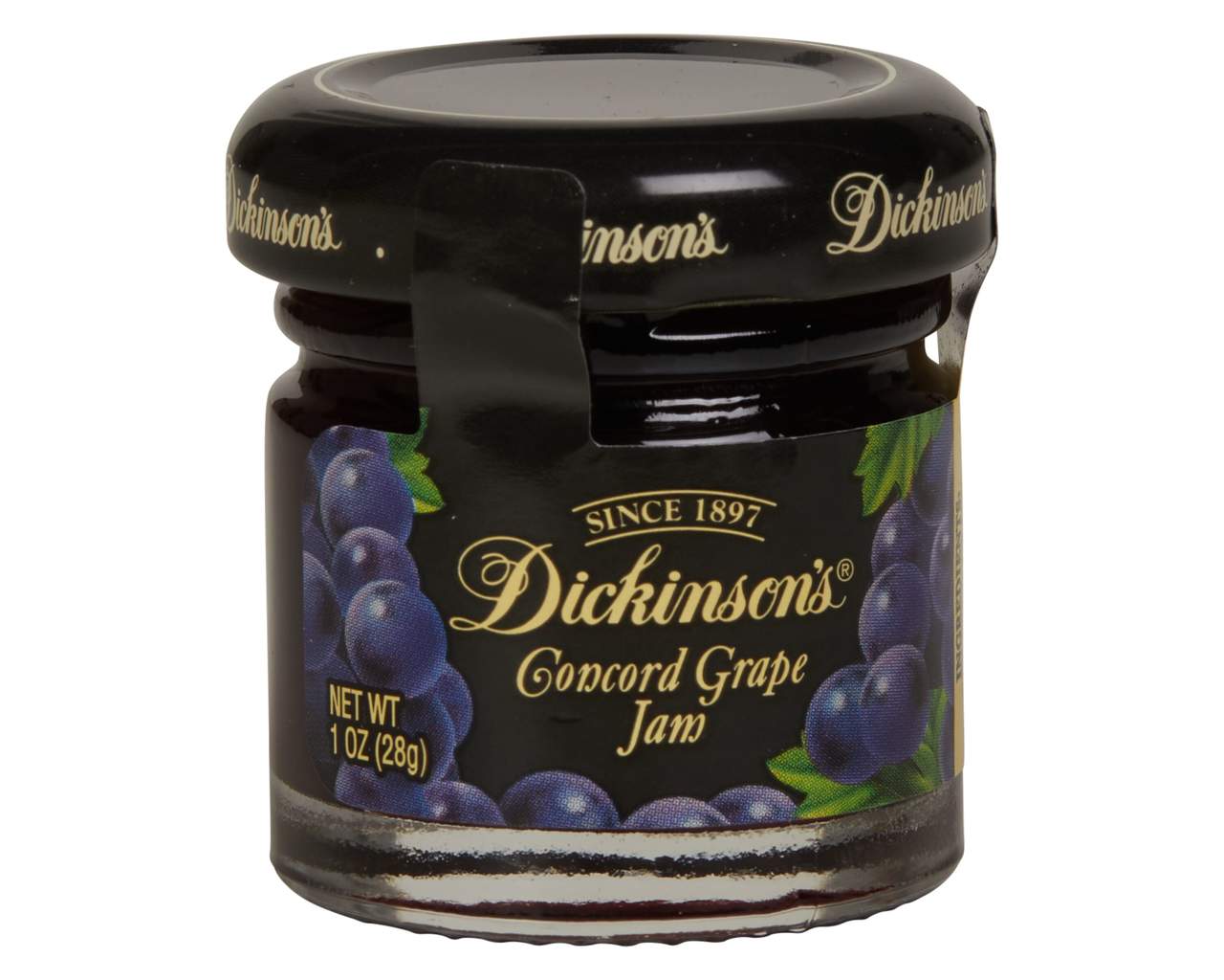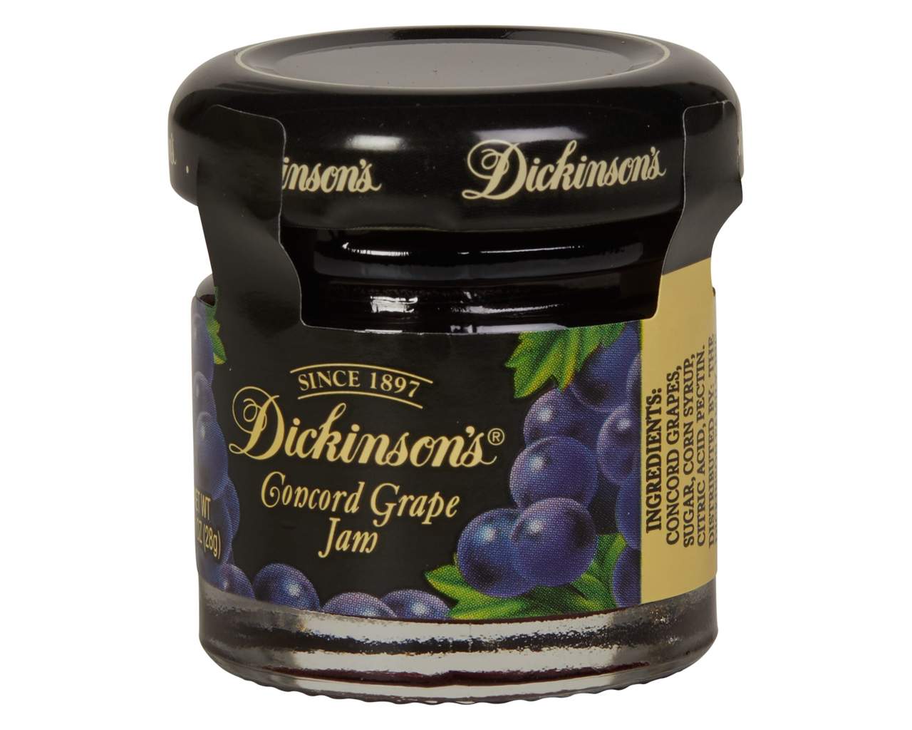 Since 1897, Dickinson's has been made with only the highest caliber premium, fruit. That's why Dickinson's is the leading American brand of gourmet preserves. Dickinson's Pure Concord Grape in 1 oz. prestige portions are most extraordinary. The glass jar preserves the exceptional product quality, and the premium Package design complements the refined images of the upscale restaurants and hotels that serve Dickinson's. Made with real fruit as the first ingredient, Free from High Fructose Corn Syrup, Crafted with premium, naturally -sourced sweeteners, No artificial additives.
