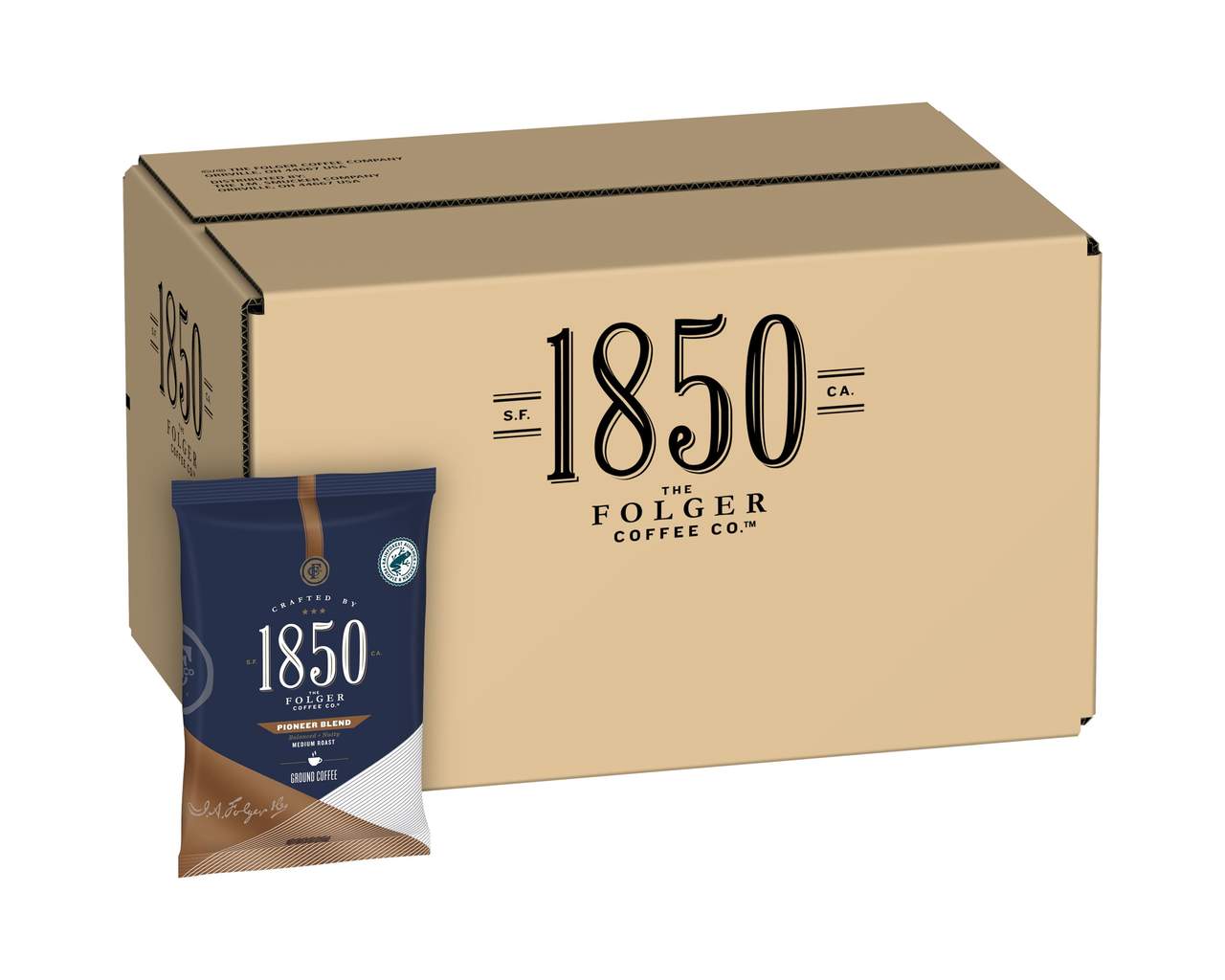 Seek your fortune with 1850 Pioneer Blend Medium Roast Ground Coffee. Made with Arabica beans, this medium roast coffee is balanced with notes of roasted nut flavor. Pre-measured packs are ground for easy commercial brewing.