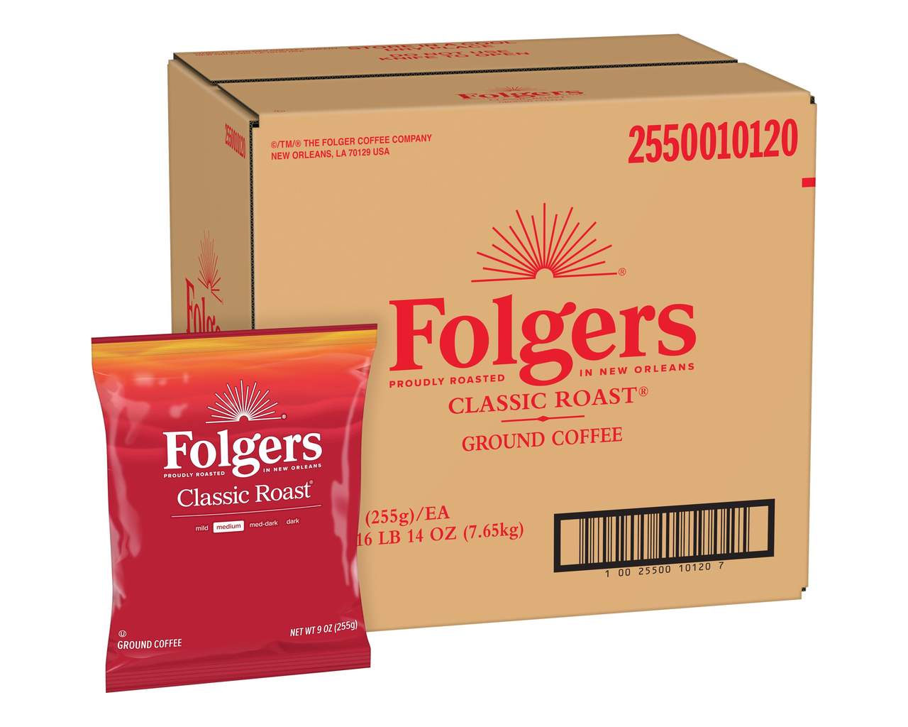 Our most popular medium roast, Folgers Classic Roast is carefully blended with the world's richest and most aromatic beans delivering rich flavor and balanced character cup after cup. Convenient urn packs are premeasured and ready for your commercial coffee brewer. The rich flavor of Folgers is more than just coffee - it's tradition. Folgers satisfies guests with the taste they love in a variety of convenient formats.