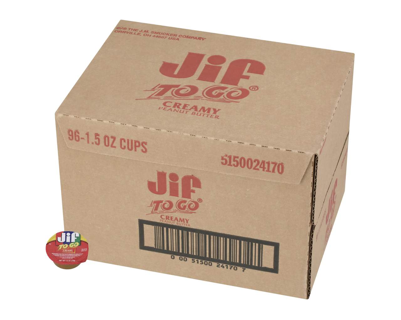 Jif To Go Creamy Peanut Butter, 1.5 oz Portion Control Cups, 96 Count Case