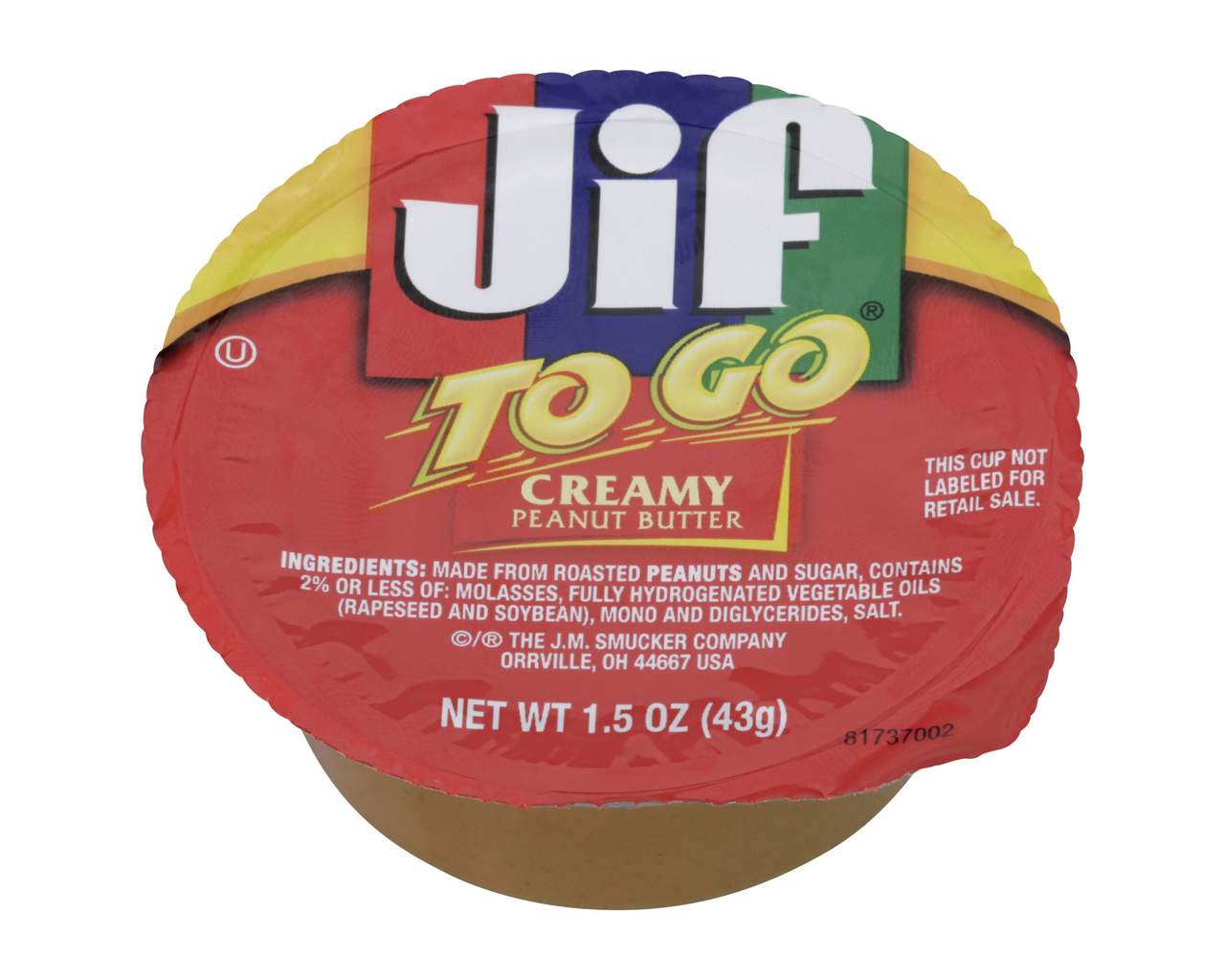 With smooth, fresh-roasted taste that stands out above the rest, Jif To Go 1.5 oz. Creamy Peanut Butter portion control cups are ready for fun and portable dipping on the go. Jif is known for its quality, consistency and rich taste. Serve all the needs of your peanut-butter-loving guests with convenient back or front-of-house options.