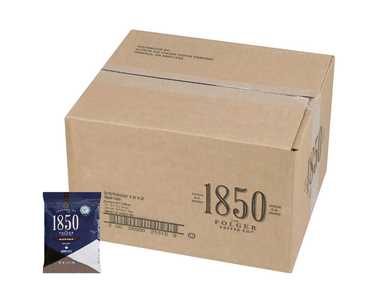 Folgers 1850 Black Gold Ground Coffee, Dark Roast, 2.5 Ounces (Pack of 24)