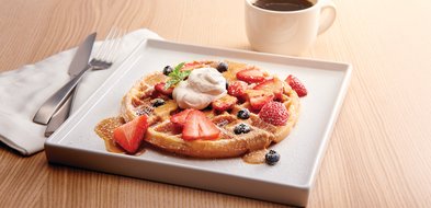A toasty on-the-go breakfast sandwich with a rich combination of creamy and crunchy, sweet and savory. Crispy bacon, cheddar cheese, thinly sliced Granny Smith apple, Jif® Squeeze Creamy Peanut Butter on a whole grain English muffin.