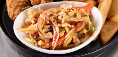 A brilliant Thai take on the loaded fry trend. Sweet potato fries topped with an irresistibly sweet and satisfying curried peanut sauce, shredded chicken, fresh jalapeño and lime.